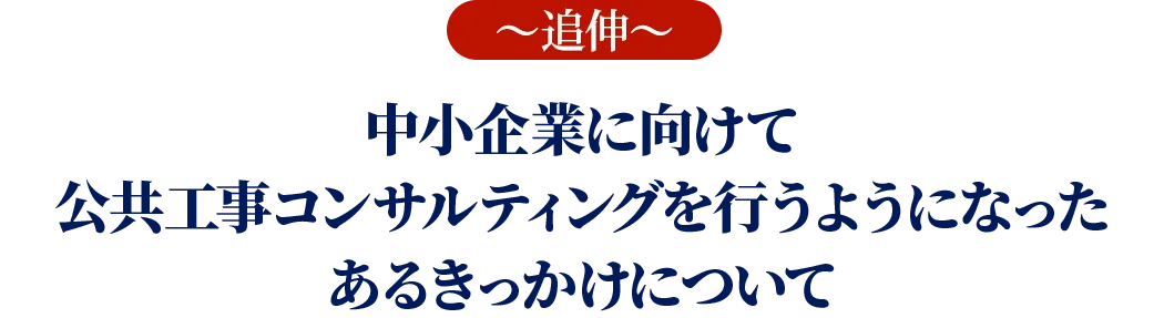 このことをきっかけに、公共工事受注へのノウハウを中小建設業に伝えようと決めました。