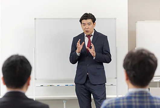 個別相談にて公共工事の受注拡大の指導を行う傍ら、説明会やセミナーにも積極的。
