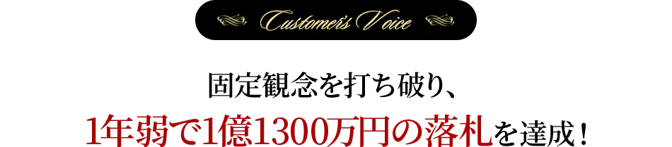 約6ヶ月で毎月20本の安定入札が可能となり、初落札から2ヶ月足らずで9件の落札、9,300万円の売上を達成しました。