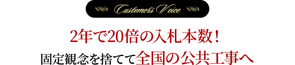 コンサルティングを受けてからは、入札本数は以前の年間数本から、年間40〜50本に、前年と比べて20倍に増えました。