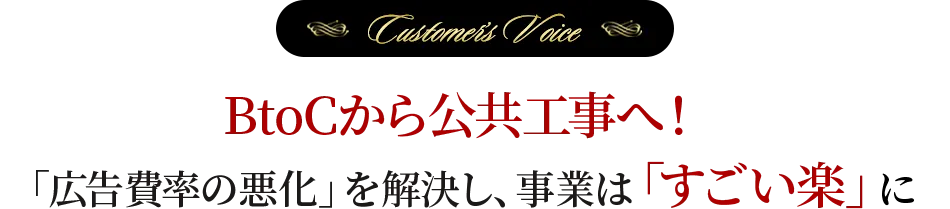 BtoC事業を長くやってきましたが、広告宣伝の戦略を自分で組んでいたBtoCに比べ、公共工事の事業は、考えることも費用も「全然楽」です。