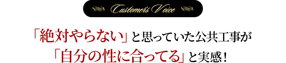 公共工事が「こんなに素晴らしいものだ」と知り、公平な入札システムと、税金で賄われている事業に貢献できる「やりがい」を感じています。