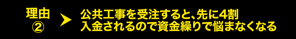 公共事業を受注すると、先に4割が入金されるので、人員の確保などの悩みがなくなります。